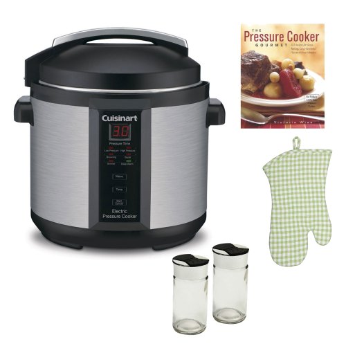 The Pressure Cooker Gourmet Cookbook.Spice Bottle Glass Finish.Green Gingham Oven Mitt.Cuisinart CPC600 Electric Pressure Cooker...Cuisinart CPC600 Electric Pressure Cooker + The Pressure Cooker Gourmet Cookbook + Green Gingham Oven Mitt + Accessory Kit Features.