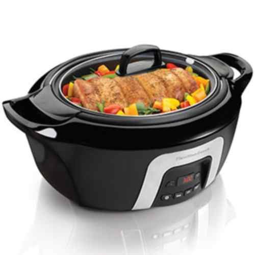 Insulated base has cooler facets than the prime competitor.Simple programmability-just set the time and temperature.Reduced energy consumption-our most energy environment friendly slow cooker.Sear or brown meat for your stovetop...then finish meal in your sluggish cooker...Hamilton Beach 6 Quart Programmable Insulated Slow Cooker (33265) Features.